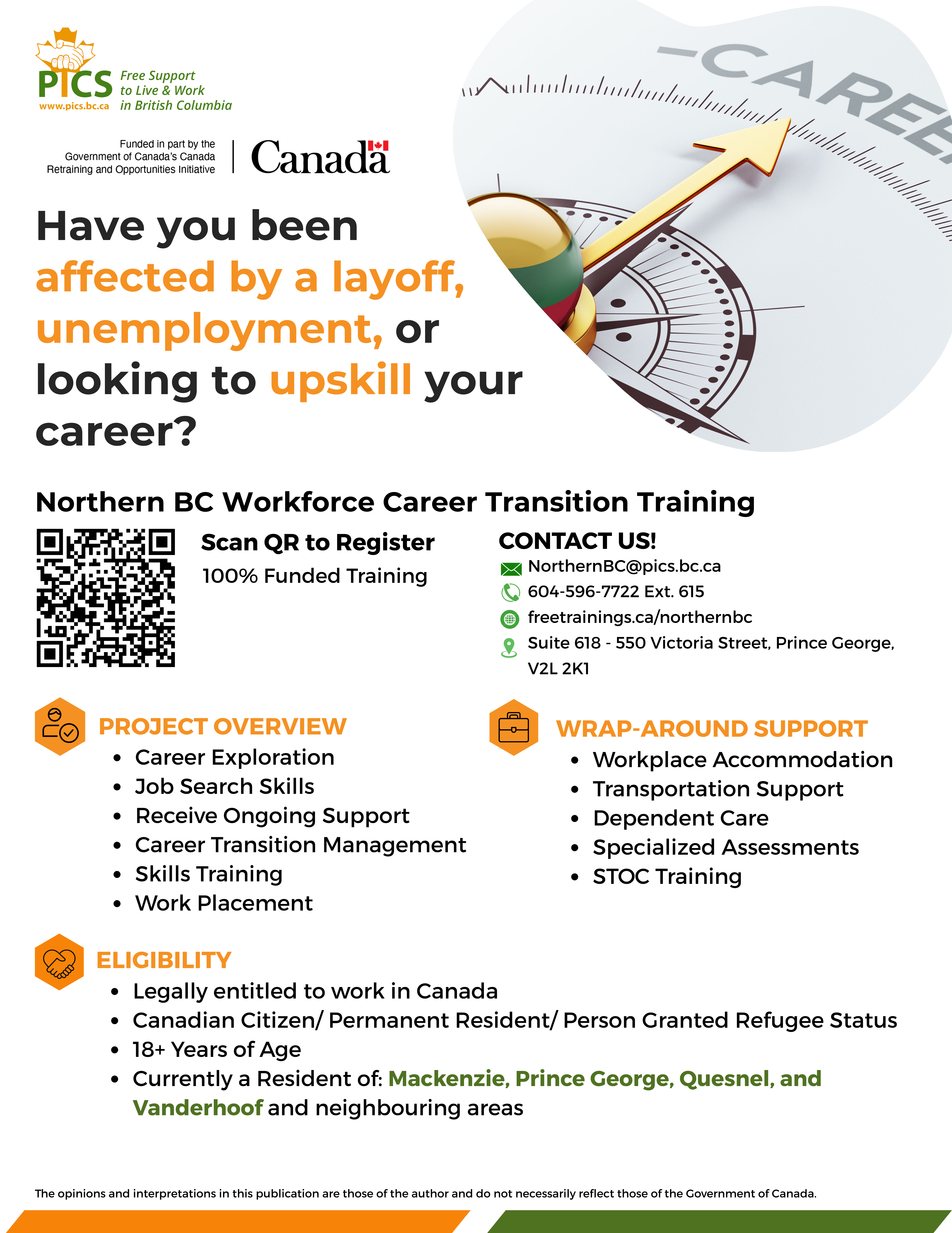 If you currently reside in Prince George, Vanderhoof, Mackenzie, Quesnel or neighbouring communities and was affected by lay off, unemployment, or just simply looking to upskill your career